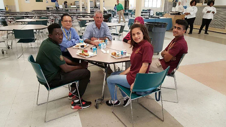 The full episode celebrates the gorgeous, charming, and fascinating people of Houston, including hip hop car enthusiasts, Vietnamese fishermen and shopkeepers, Congolese and Ghanaian urban farmers, Mexican American families, and a larger-than-life Indian American radio host. But for the Alt Ed Austin community, the most inspiring visit Bourdain made down in Houston was to Margaret Long Wisdom High School (formerly known as Robert E. Lee High School). Principal Jonathan Tranh, a Vietnamese immigrant himself, led a tour of “the most diverse high school” in a city where minorities are now the majority. At Wisdom HS, 80 percent of students speak English as a second language, and dedicated ESL instructor Gary Reed is one of the keys to the kids’ future success.